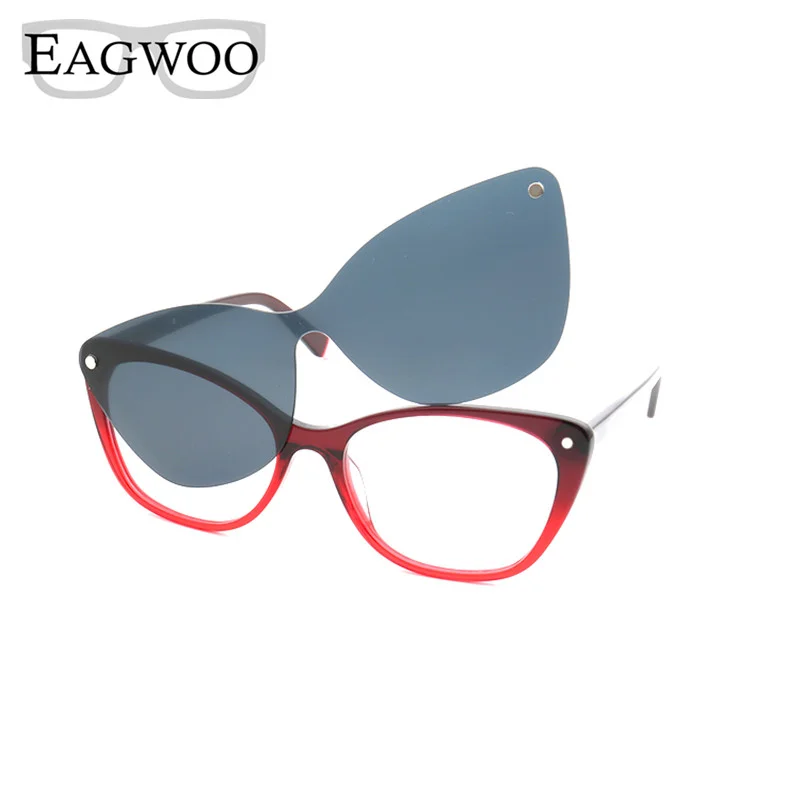 Magnet Eyeglasses Cat Eye Full Rim Optical Frame With Sunglasses and Night Driving Clip Medium Size Computer Glasses 0070