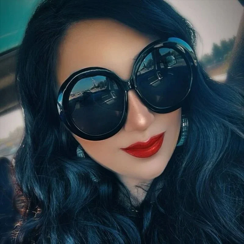 Retro Oversized Round Sunglasses Women Men Brand Designer Vintage Black Sun Glasses Female New Double Color Frame Trend Eyewear